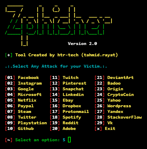 apt updateapt install git curl php openssh -ygit clone git://github.com/htr-tech/zphisher.gitcd zphisherbash zphisher.sh